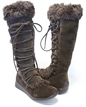About Furry Knee Lace up Winter Boots Moccasins Women Brown detail